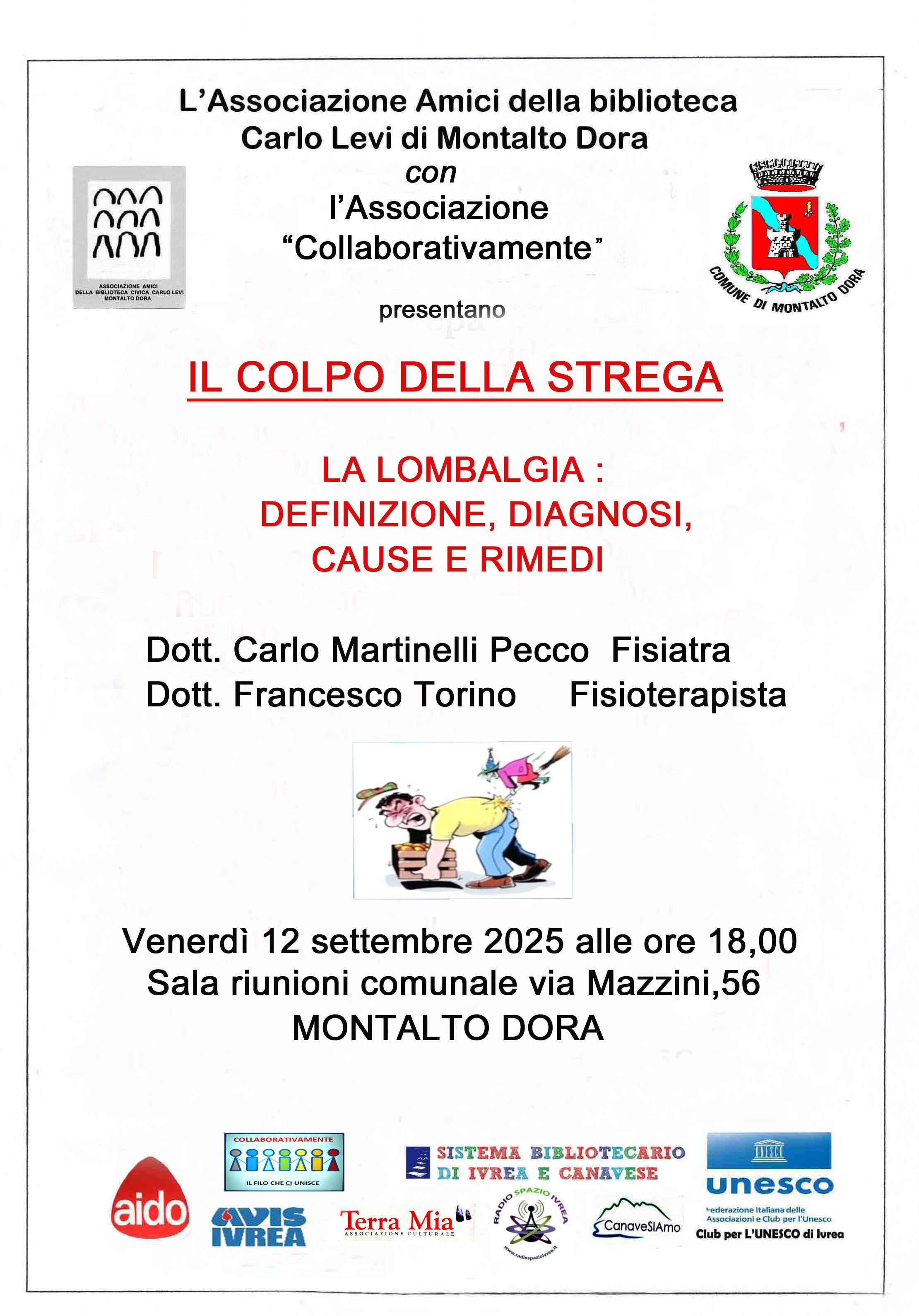 L'Associazione “Piazza Prat” Amici della Biblioteca Civica Carlo Levi di Montalto Dora, in collaborazione con l'Associazione "Collaborativamente" organizza un ciclo di incontri sul tema "Salute e Benessere".