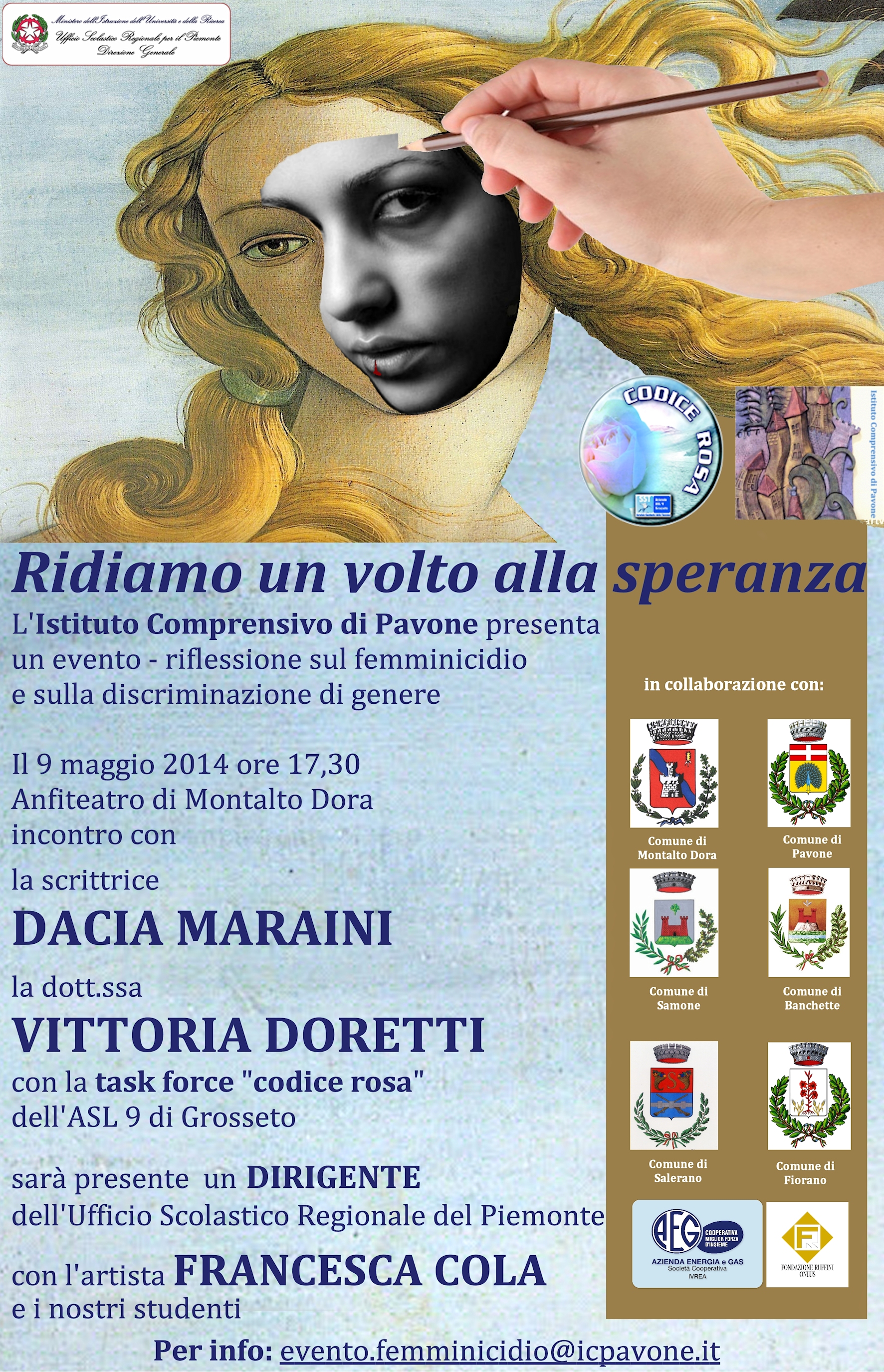 Venerdi 9 maggio 2014, alle ore 17.30, all'Anfiteatro Comunale "Angelo Burbatti", si svolgerà un evento-riflessione sul femminicidio e sulla discriminazione di genere, tema oggi di grande attualità.