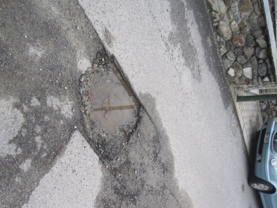 Sono buche di ca. 80x80 cm. che costituiscono un enorme fastidio per chi deve evitarle tutti i giorni, in auto o in bicicletta.