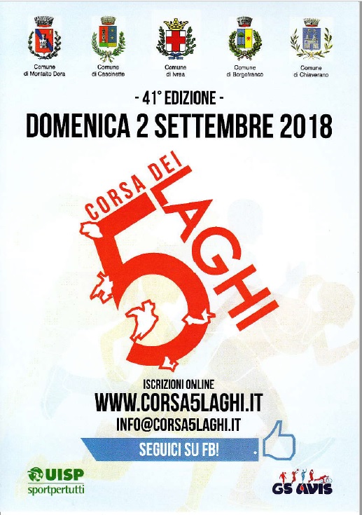 Domenica 2 settembre 2018 si svolge la tradizionale "Corsa dei 5 Laghi", gara podistica competitiva di 24 km che si snoda nella bellissima cornice dell'Anifiteatro Morenico di Ivrea con un percorso immerso nella natura e nel verde delle colline, in parte su asfalto, in parte su sentiero sterrato toccando i Comuni di Ivrea, Montalto Dora, Borgofranco d’Ivrea, Chiaverano e Cascinette d’Ivrea.