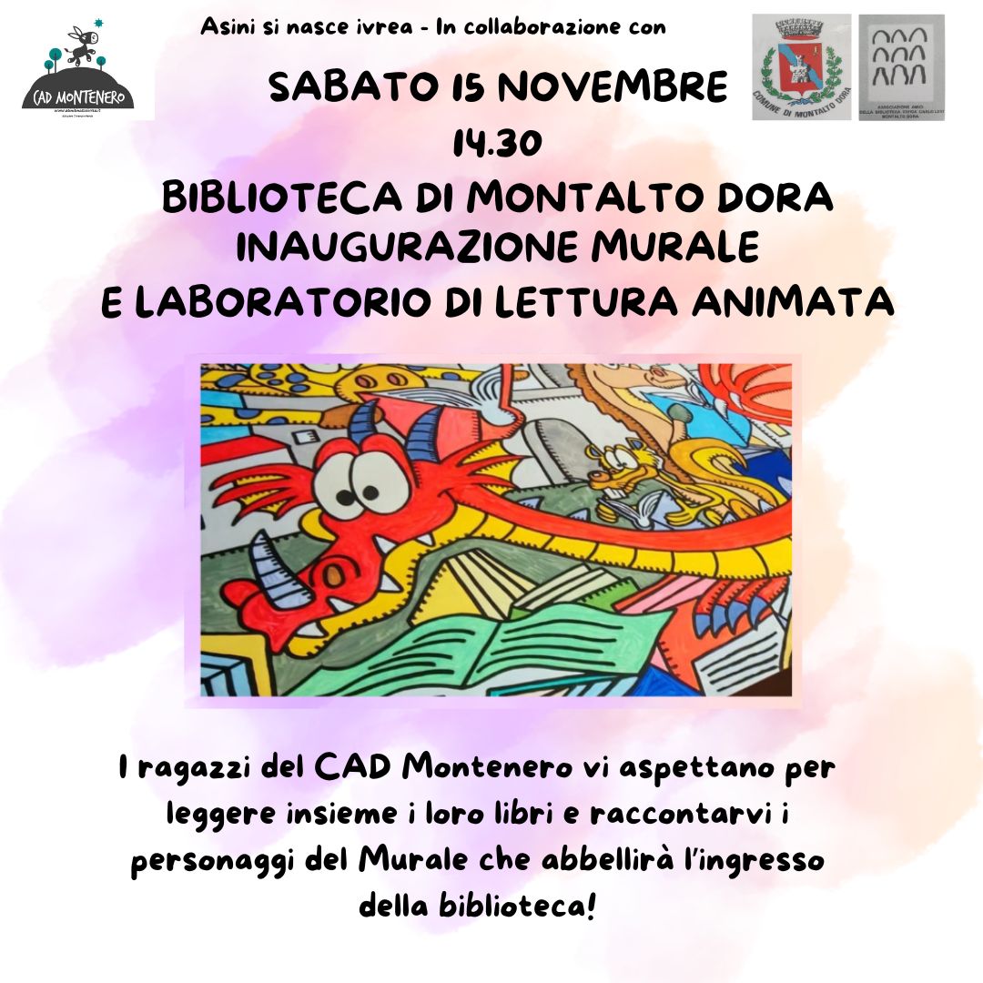 L'inaugurazione del murale è prevista per sabato 15 novembre p.v. alle ore 14.30 presso la Biblioteca Civica "Carlo Levi" in Piazza Prat a Montalto Dora.