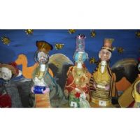Il presepe è stato realizzato con bottiglie di plastica, palline colorate trasparenti apribili, colla, scotch, cartoncini colorati, stoffa, tappi di sughero e plastica, cotone, vasetti dello yogurt, perline... I volti sono quelli di alcuni 'grandi' della storia (Mandela, Madre Teresa di Calcutta...)